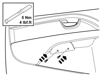 - Tighten the panel using the two screws, tightening torque 5 Nm (4 lb.ft.).