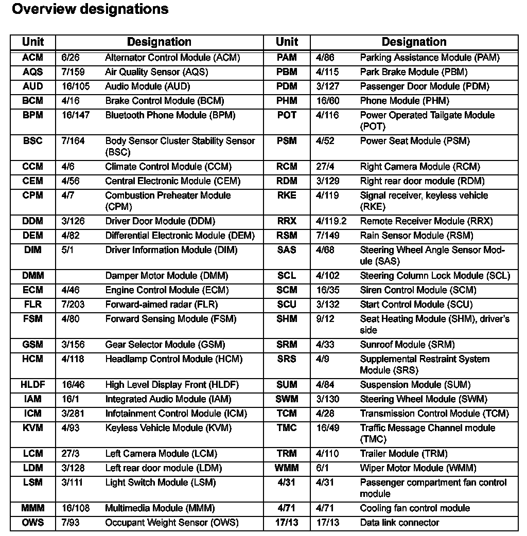 Overview Designations: