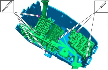 Note! Release all catches and lift the fuse/relay holders at the same time.