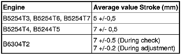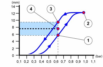 Calculate the average value by adding the read off stroke at an increase of pressure (Depressurized to check pressure) to the read off stroke at a pressure reduction (Max. pressure to check pressure), divide by 2.
