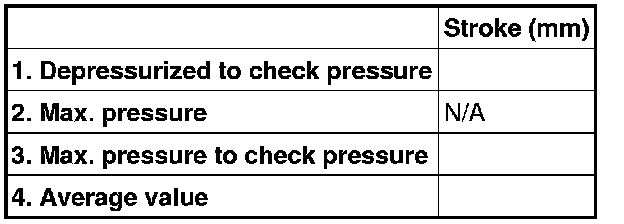 For example: The read off stroke at pressure increase (Depressurized to check pressure) 5.7 mm. Read off stroke at pressure drop (Max. pressure to check pressure) : 8.3 mm. Average value = (5.7+ 8.3) / 2 = 7 mm