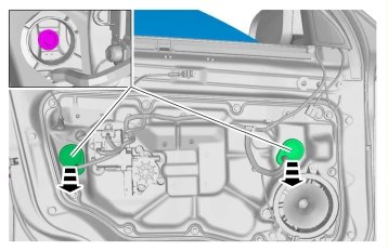 Remove the door panel. Refer to: Panel front door Panel Front Door.