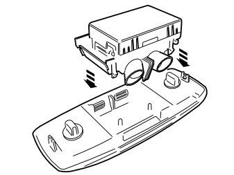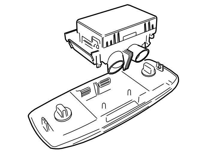 - Take the new reading lamp and sensor from the kit. Press the sensor into the reading lamp. Make sure that all catches have engaged. The connector in the sensor must point to the left and the connector in the lamp to the right when the unit is reinstalled in the car.