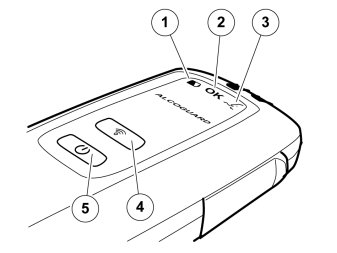 In addition to the light-emitting diode (2) which responds to the driver's breath test, there are two light-emitting diodes that show the battery's charge level (1) and if the hand unit is ready for testing (3).