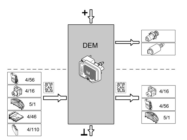 The Differential Electronic Module (DEM) communicates with other control modules via Controller Area Network (CAN) communication: