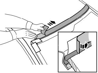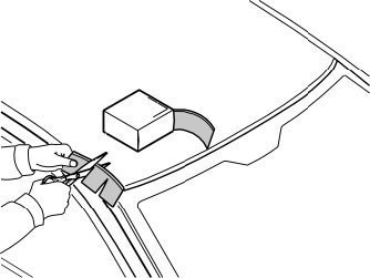 The masking consists of two plastic foil pieces that are to be inserted between the window seal strip and the roof side, and are then to be taped against the rear window.