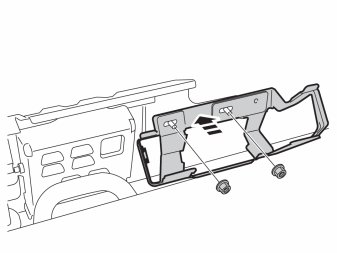 - Take the siren and insert the right stud bolt in the holder's right hole and hook on the left stud bolt in the attachment bracket in front of the air inlet for the climate unit.