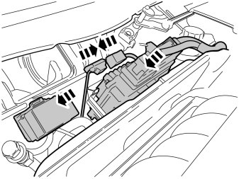 - Remove the connector for the headlights' control module, located in the bracket's lower edge on the right side, and remove the bracket with control module.