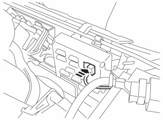 - Loosen the relay box from its holder to access the siren's attachment bracket in front of the air inlet to the climate unit.