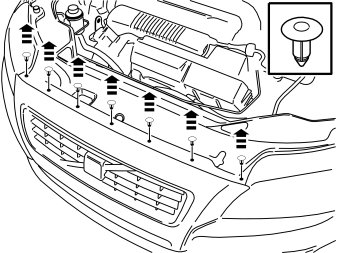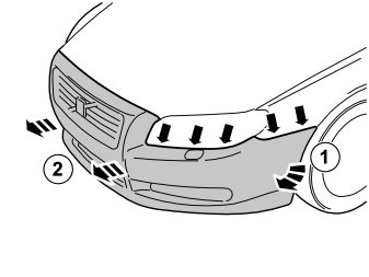 - Fold out the bumper casing's ends on both sides, they are installed with two clips to the front fender and three under the headlight.