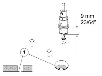 - Drill for the connection of the connector. Drill through all layers of the dashboard. Use a 25 mm (1")drill stop.