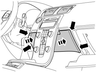 - Detach the surround around the display and the media player: Press in the catch at the edge of the media player cover. Use a small screwdriver. Carefully pry off the surround at the corner. Use a plastic weatherstrip tool.