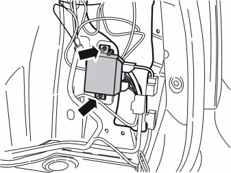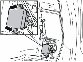 - Remove the Parking Assistance Module (PAM) with cables behind the right-hand wheel arch. This is done to make space for installing the Accessory Electronic Module (AEM).