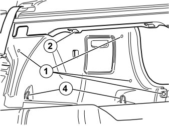 - Unhook the side panel from the mounting (3, illustration B) on the underneath of the parcel shelf.