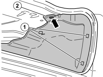 - Remove the five clips (1, illustrations A and B) holding the side panel in the bodywork.