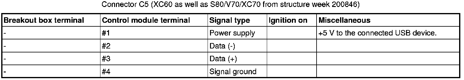All values below are measured between the relevant terminal in column 1 and C2-8 in column 2 (power ground) unless otherwise stated in parenthesis after the table entry.