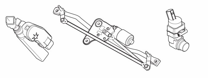 The windshield wipers are operated by a motor located beneath the plenum chamber cover. Washer jets are located on the hood and bumper shell for windshield and headlamp washing. The jets are connected to two different pump motors on the washer fluid reservoir, which is located at the front right of the engine compartment. One pump motor is used for high pressure washing of the headlamps while the other is used for windshield washing.
