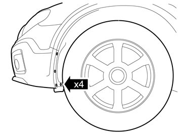 - Remove the four screws in the leading edge of the wheel housing on both sides.