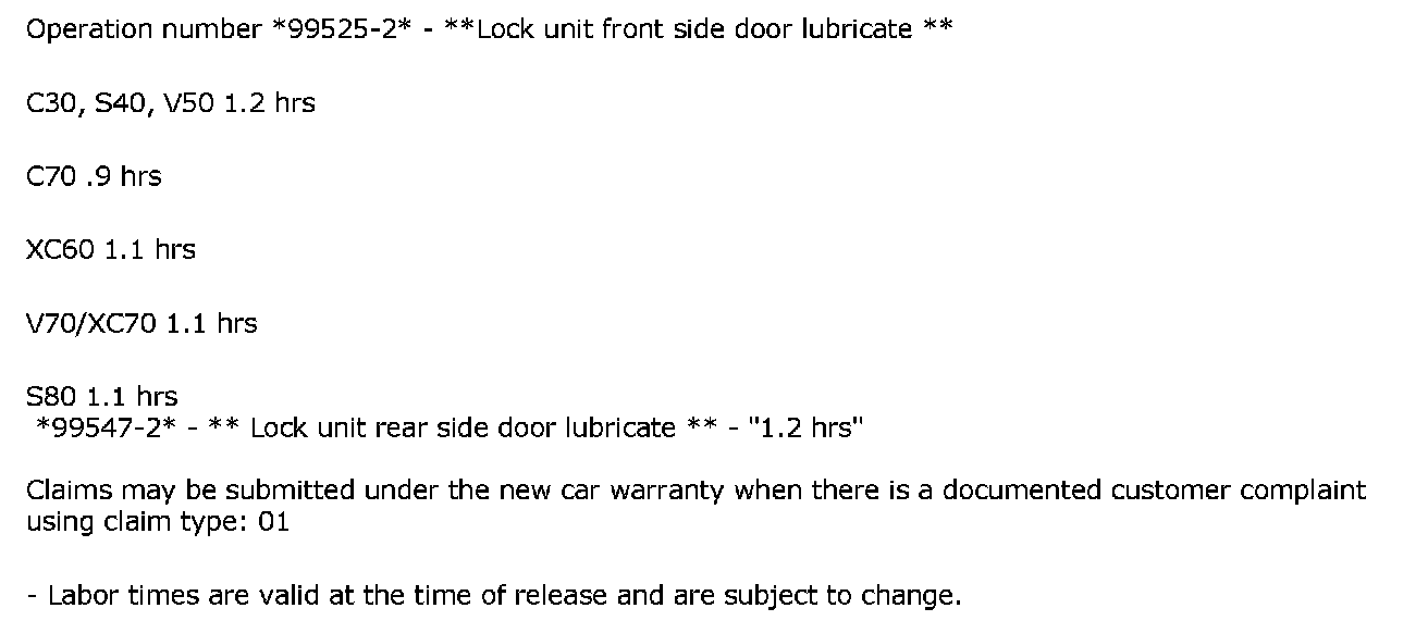VOLVO STANDARD TIMES GUIDE (VSTG) INFO