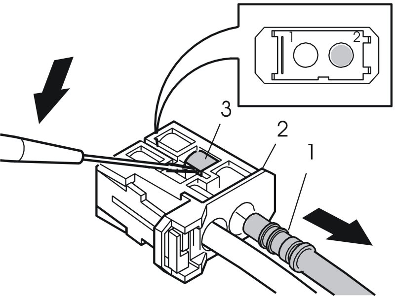 Cut the fiber optic. Use: 951 2868 Fiber cutter 951 2868 Fiber Cutter as illustrated.