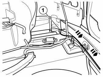 - Take the cable harness out from the kit. Place it along the rear harness with the white connector (1) by the right-hand tail lamp.