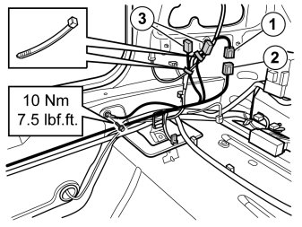 - Connect the ground lead to the existing ground terminal. Tighten the screw. Tighten to 10 Nm (7.5 lbf ft).