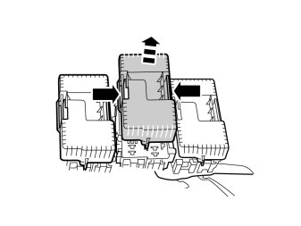 - Press in the catches at the sides of the fuse module RJB-A (black cover) and pull it out.