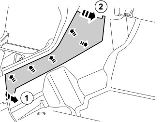 - Route the cable on the right-hand side of the tunnel console. If it is difficult to route, bend a thin piece of wire and insert it to route the cable through (Image B).