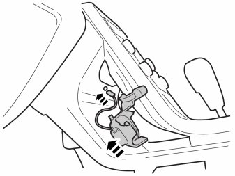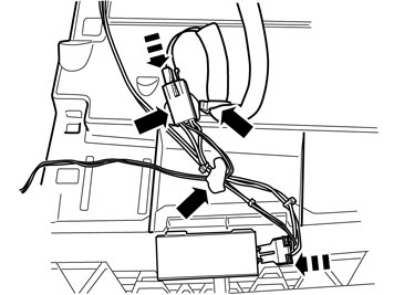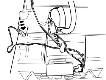 - Connect the cable from the cradle to the cable routed to the rear edge of the glove box. Ensure that the cable goes under the member.