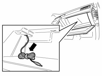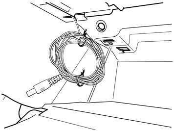 - Detach the Velcro strip from the long rolled up black cable. Pull up the cable in front of the air duct and in through the hole at the upper edge of the glovebox's left front corner.