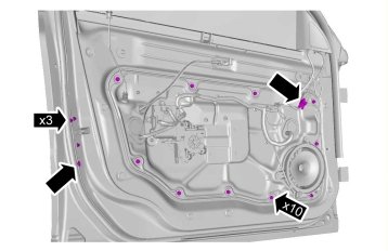 Remove window side door front Refer to: Window, front door. Service and Repair