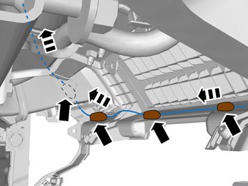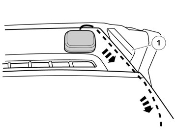 - Route the cable under the cradle (1) for the A-pillar and back.