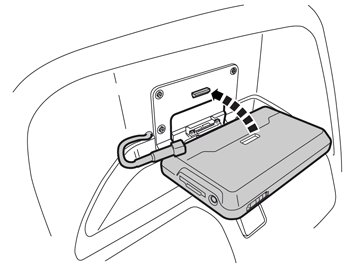 - Take the Garmin device, connect the aerial and align the guide holes in the bottom, with the corresponding lugs in the cradle.