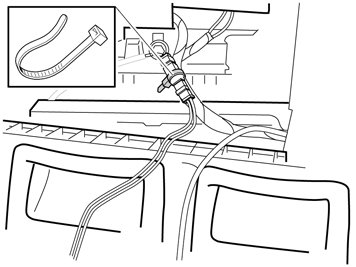 - Route the cable excess back to the rear edge of the dashboard where the cable was previously routed.