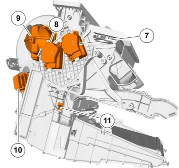 - (7) Damper motor module (DMM), air distribution left-hand side
