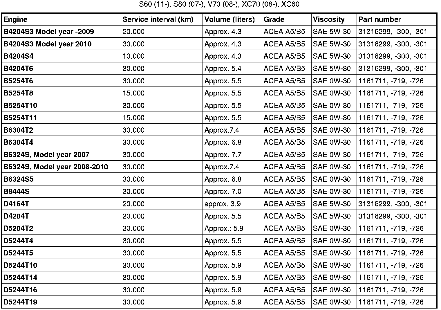 XC60 FWD L6-3.2L VIN 96 B6324S2