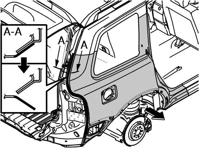 Determine the extent of the damage. See Rear end, alignment chart and Body side, alignment chart .