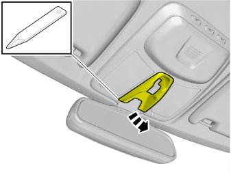 - Release the catches and carefully pull the interior lighting downwards and let it hang from its wires.