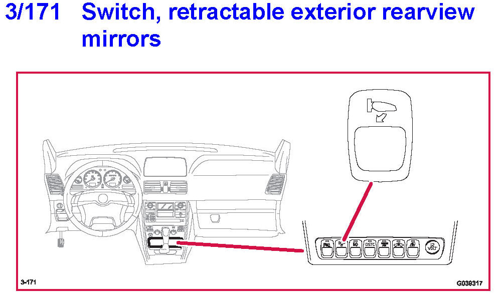 3/171 Switch, Retractable Exterior Rearview Mirrors