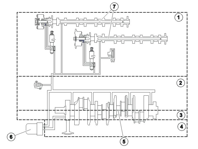 Oil is led from the oil sump via a suction nozzle to the oil pump, which is located on the crankshaft. The oil pump suction function is facilitated by a purge valve that eliminates any air from the system.