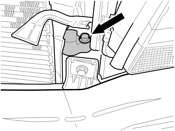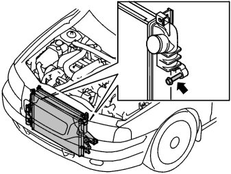 Remove the condenser straight down, press aside the A/C pipe slightly on the left-hand side while pulling the condenser down.