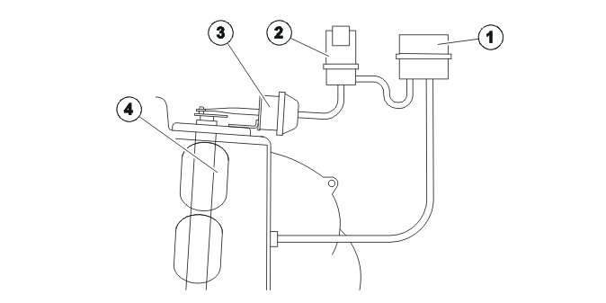 The vacuum from the engine is stored in a vacuum tank (1). The vacuum is then guided to the vacuum motor (3) using the variable intake valves (2). The vacuum motor affects the damper in the intake system.
