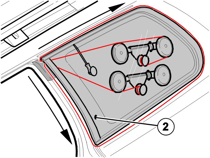 Apply PUR rim activator (blue cork) to the remaining PUR bead on the tailgate if the windshield has been removed for more than eight hours.