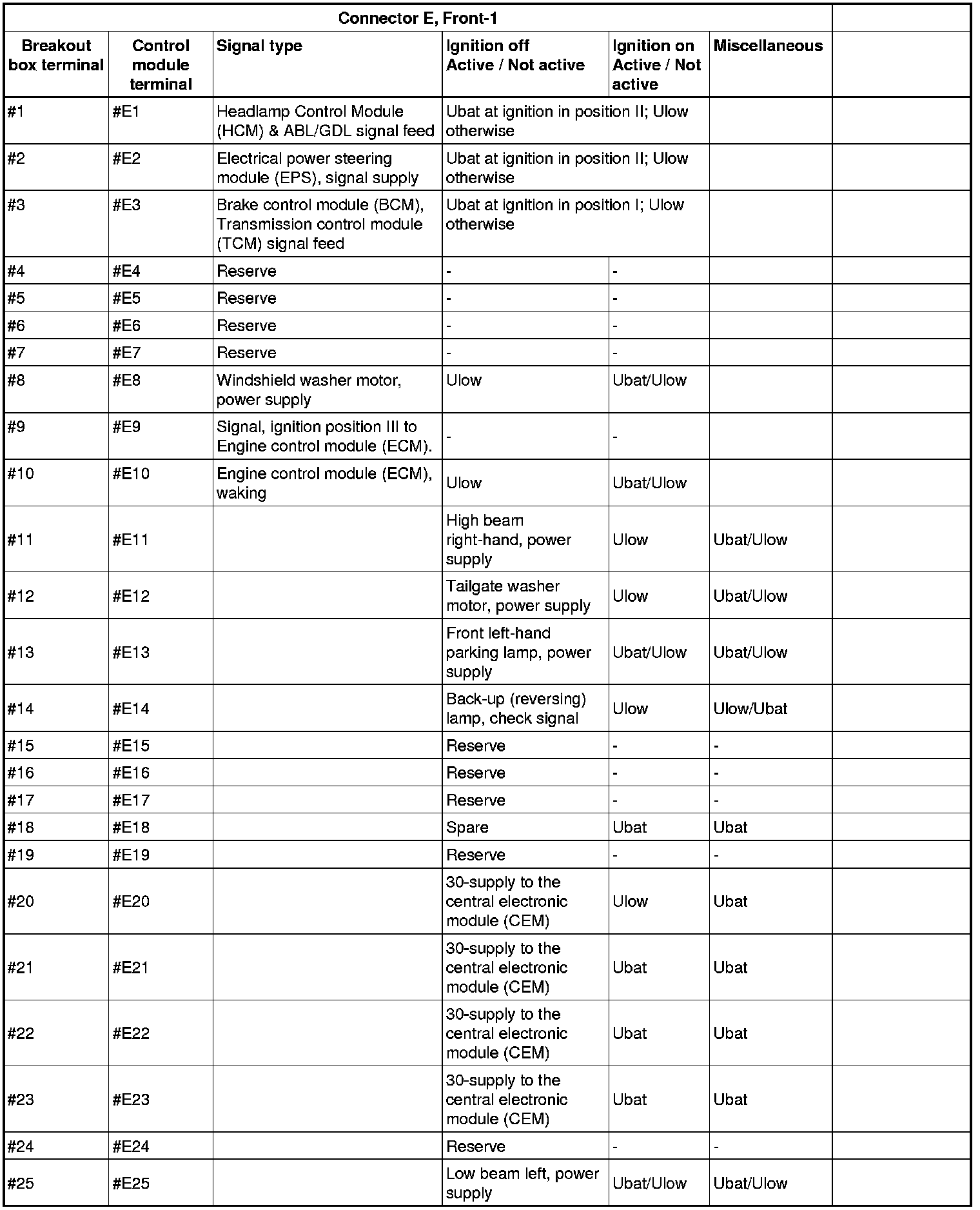 Signal Description, Central Electronic Module (CEM)