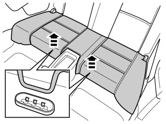 - Remove the rear seat cushion by first pressing the outer edges of the cushion backwards and then by pulling them upwards so that the outer hooks release.