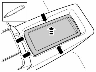 - Carefully pry off the panel inside the centre console. Use a plastic weatherstrip tool. The panel is secured by two clips on each of the short sides.