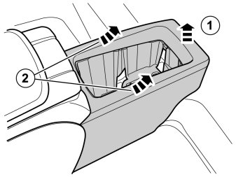 - Remove the rear cup holder from the rear tunnel compartment by prying at the leading edge and pressing in the catches, first at the leading edge and then on the sides.