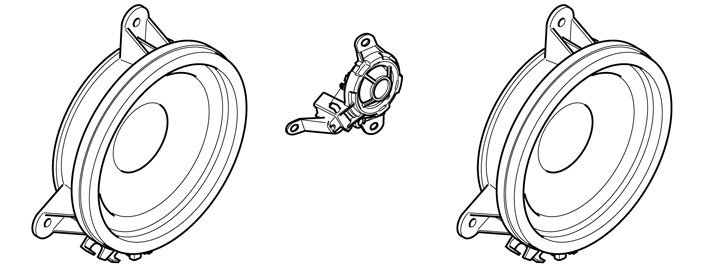 In each front door there are two speakers. The 2-way system consists of broad-banded bass/mid-range speakers and separate treble speakers. In both rear doors there is a broad-banded bass/mid-range speaker.