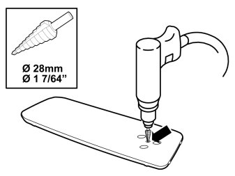 - Drill out corresponding hole in the loudspeaker's bracket using a -25 mm (1") hole saw.