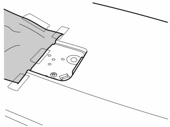 - Secure the connected connectors at the bottom of the space where the loudspeaker was, using a piece of butyl tape.